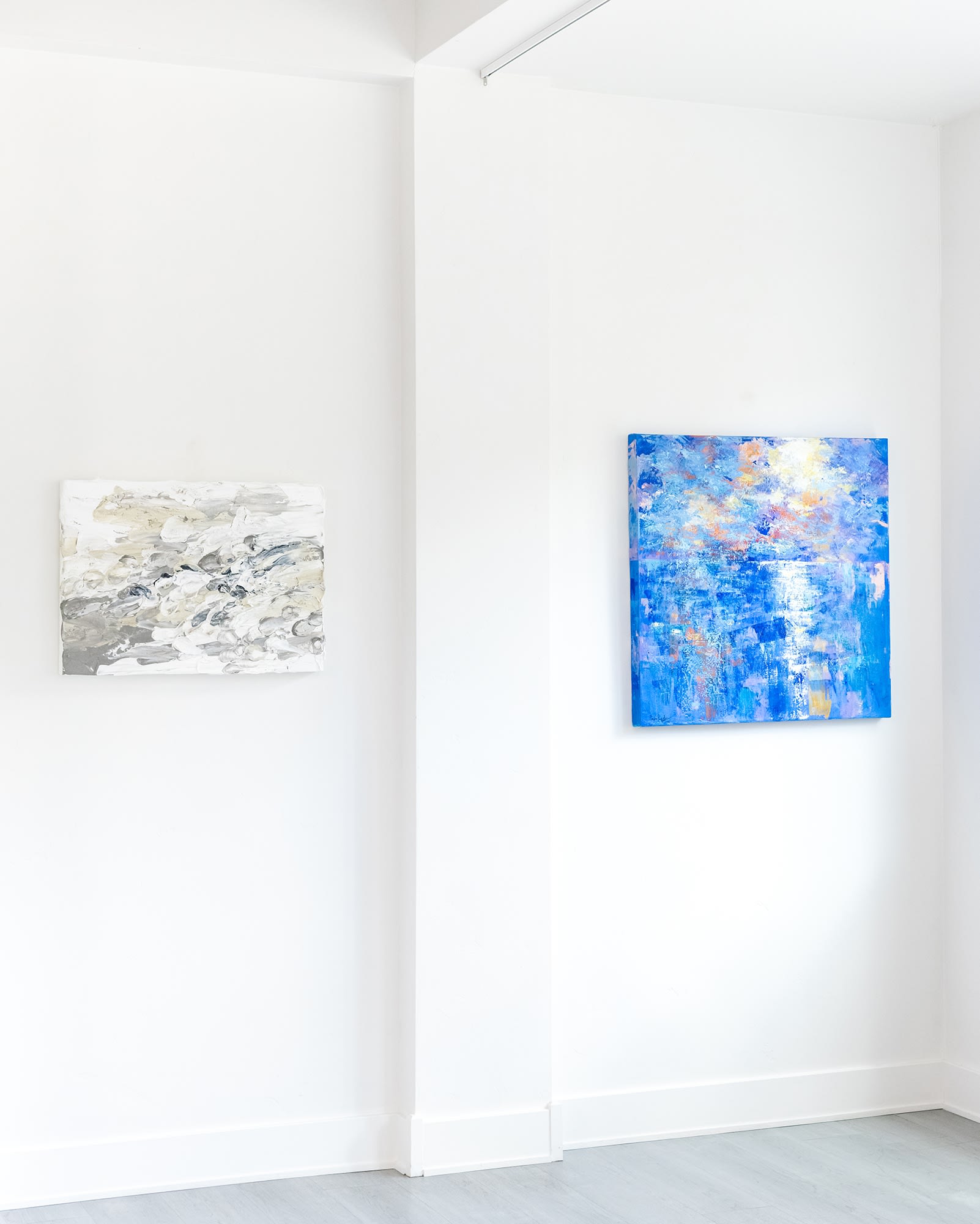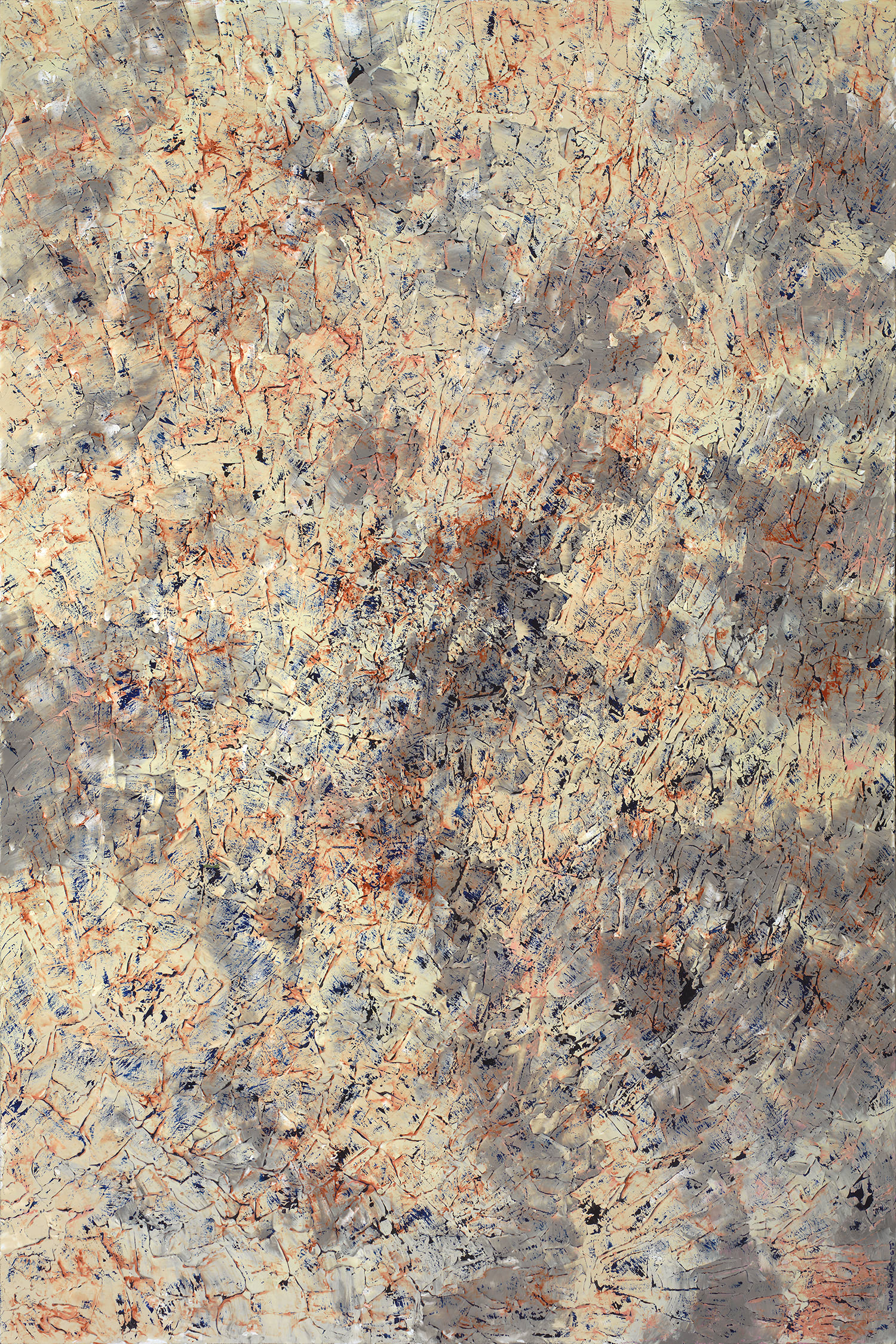 With Fractured Mist, Swartz has achieved a texture akin to the surfaces of the Breaking Away canvases. She has captured the ephemeral and shimmering quality of mist through delicately applied layers of paint.