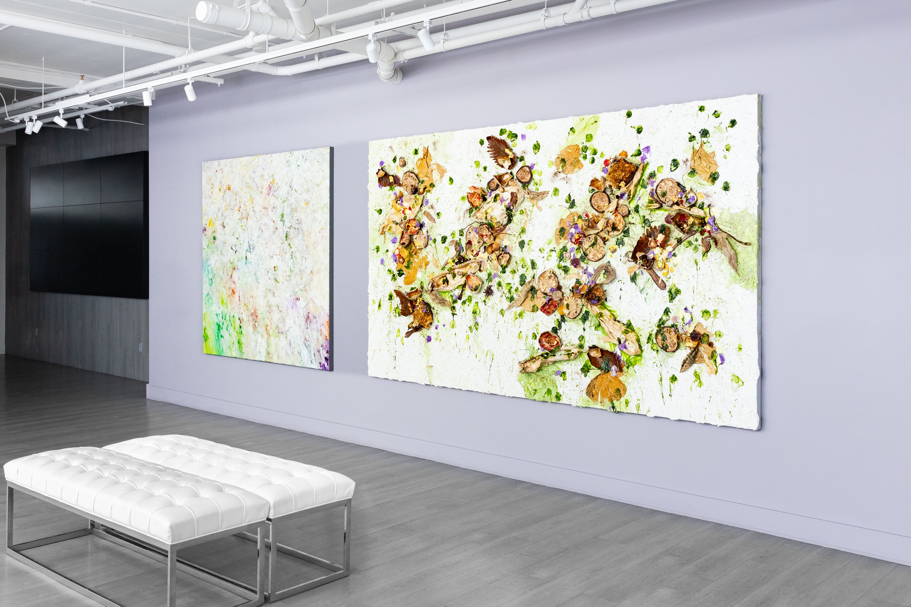 Susan's largest piece from the landmark Evolution of Nature series is hung alongside Contemplation Unveilied. A grand duo in stature, both works call on themes of organic abundance and vitality.